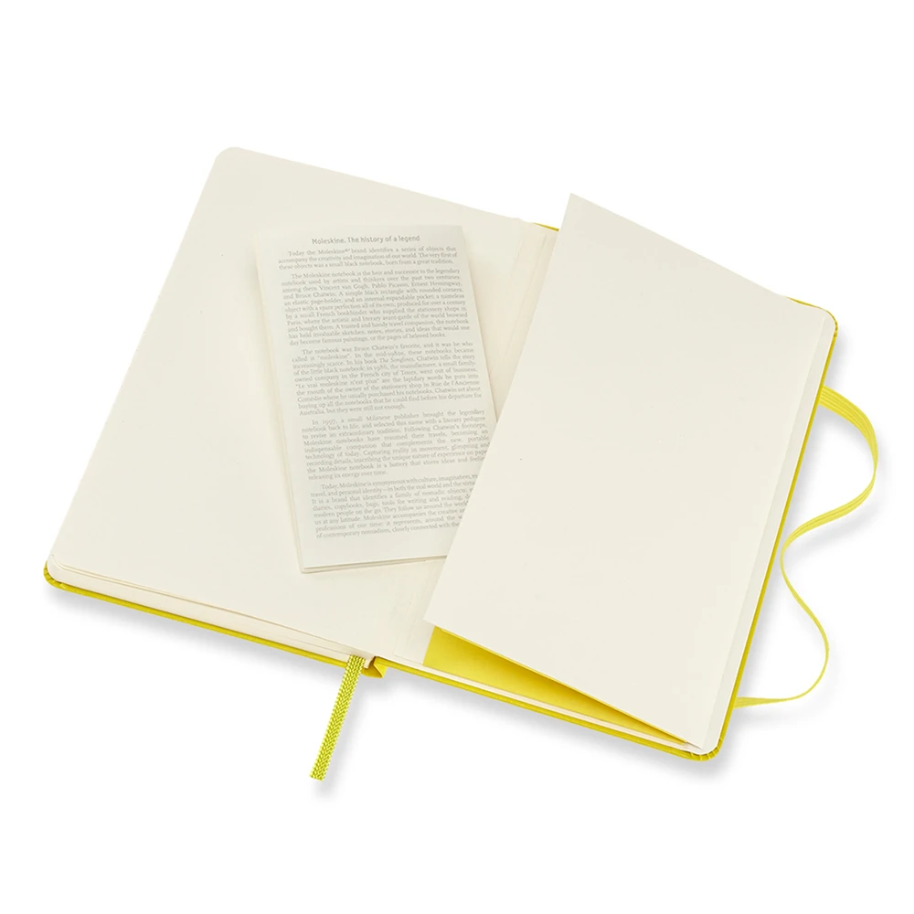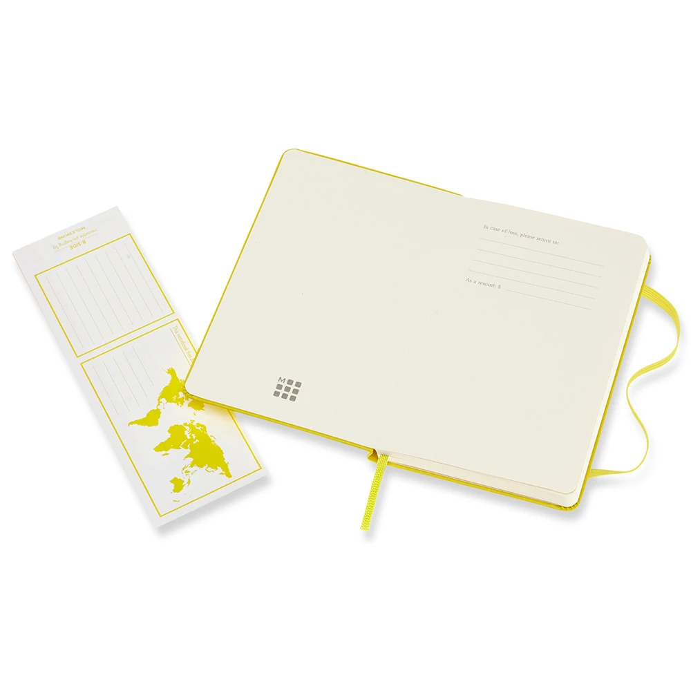 In keeping with all of Moleskine’s Classic Notebooks, this lemon green edition has a matching elastic strap for keeping the contents secure when not in use as well as a coordinating bookmark ribbon. The expandable pocket on the inside-back cover allows room for loose scraps and keepsakes, while the ‘In case of loss’ stamp on the inside-cover lets you mark your ownership of this personal piece.