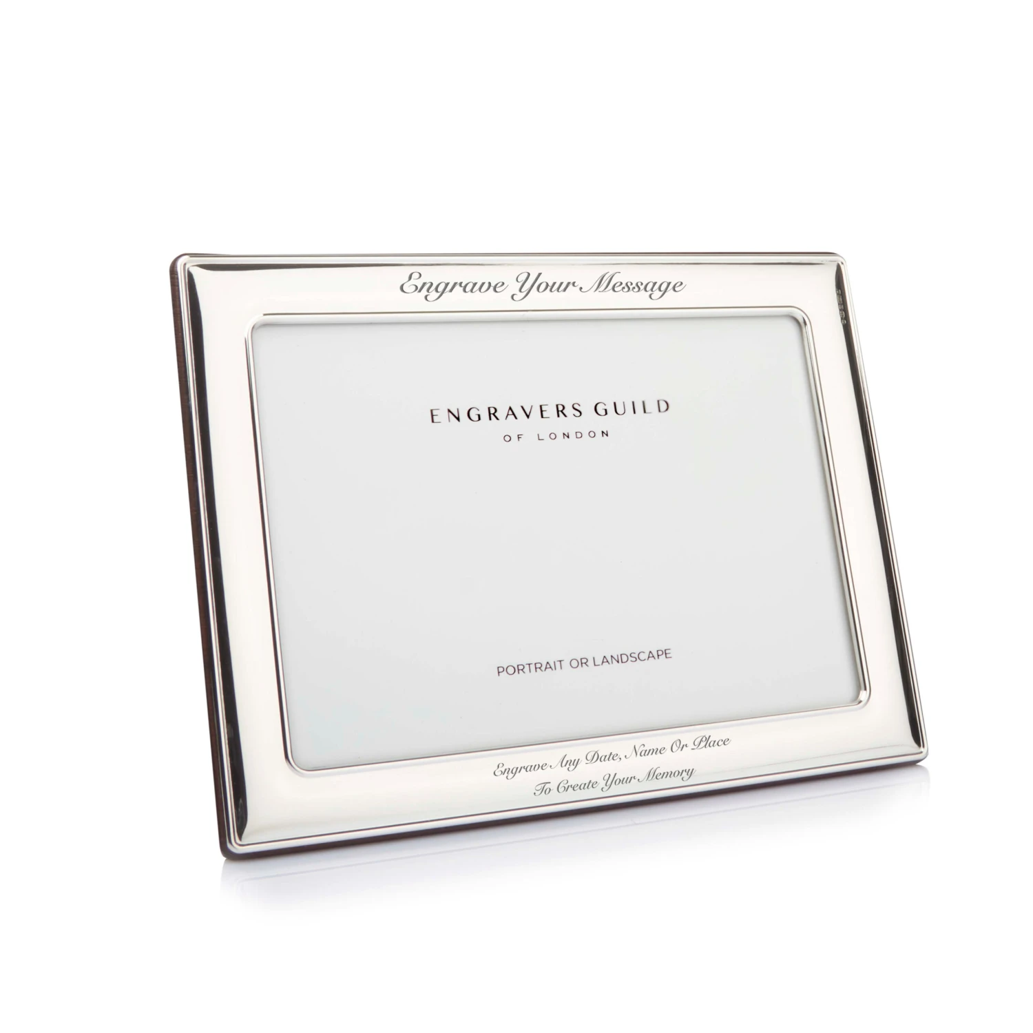Sterling silver photo frame, to fit a printed 4×6 photo, manufactured by Carrs Silver. Sheffield England. Showcase your favourite photographs with this sterling silver plain design photo frame with a mahogany finish back. This frame is completed with a standing strut and can be displayed either portrait or landscape to suit your chosen photo. With the added special message, personalised using precision engraving. this gift is beautifully unique to everyone.