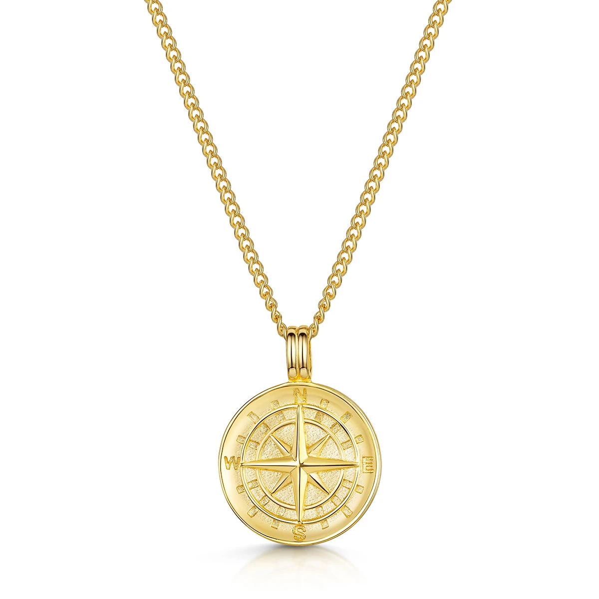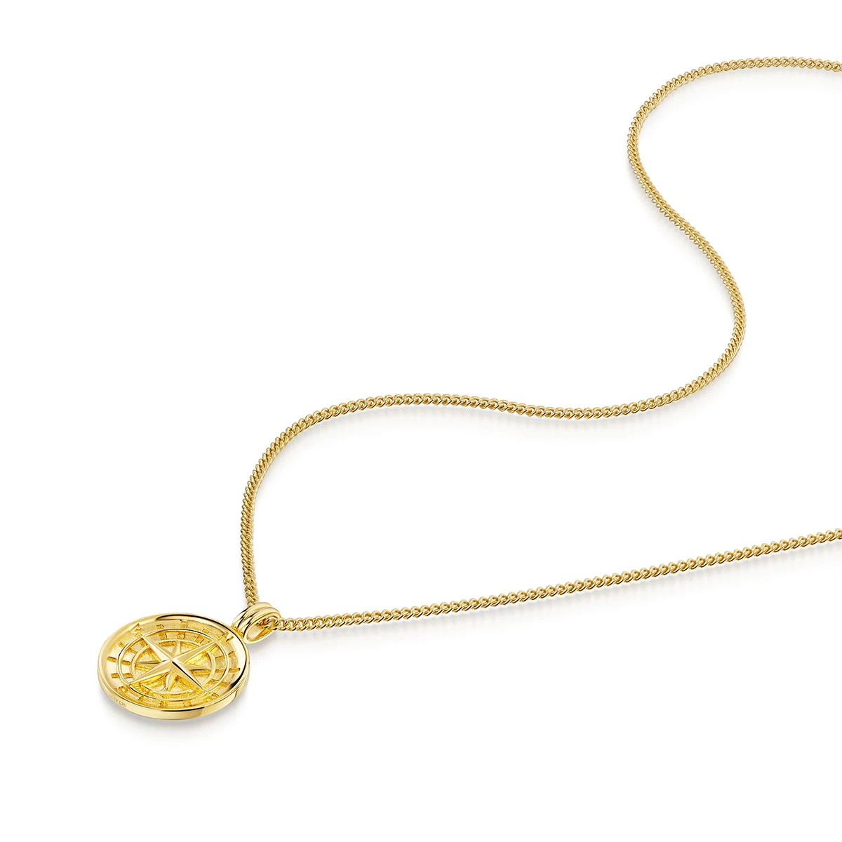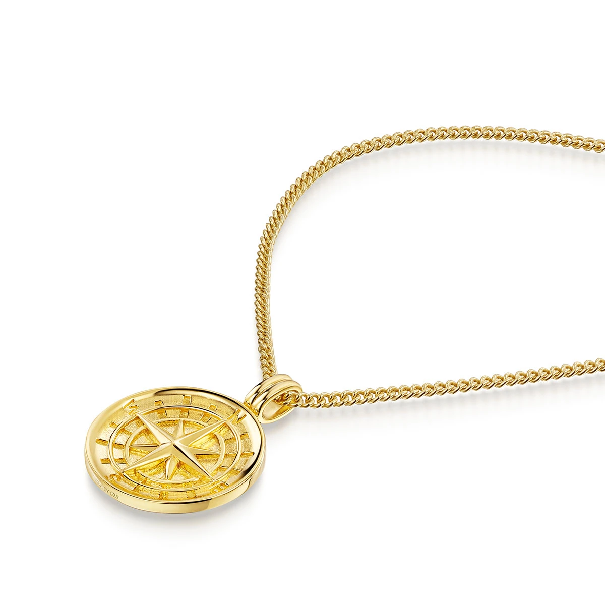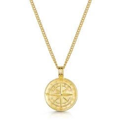 A popular statement piece for the modern globe-trotter, the Compass Necklace and chain from Clewley are crafted from 925 sterling silver plated with 18K gold. This round compass pendant serves as a symbol of adventure, guiding you through life’s journeys with grace and style.