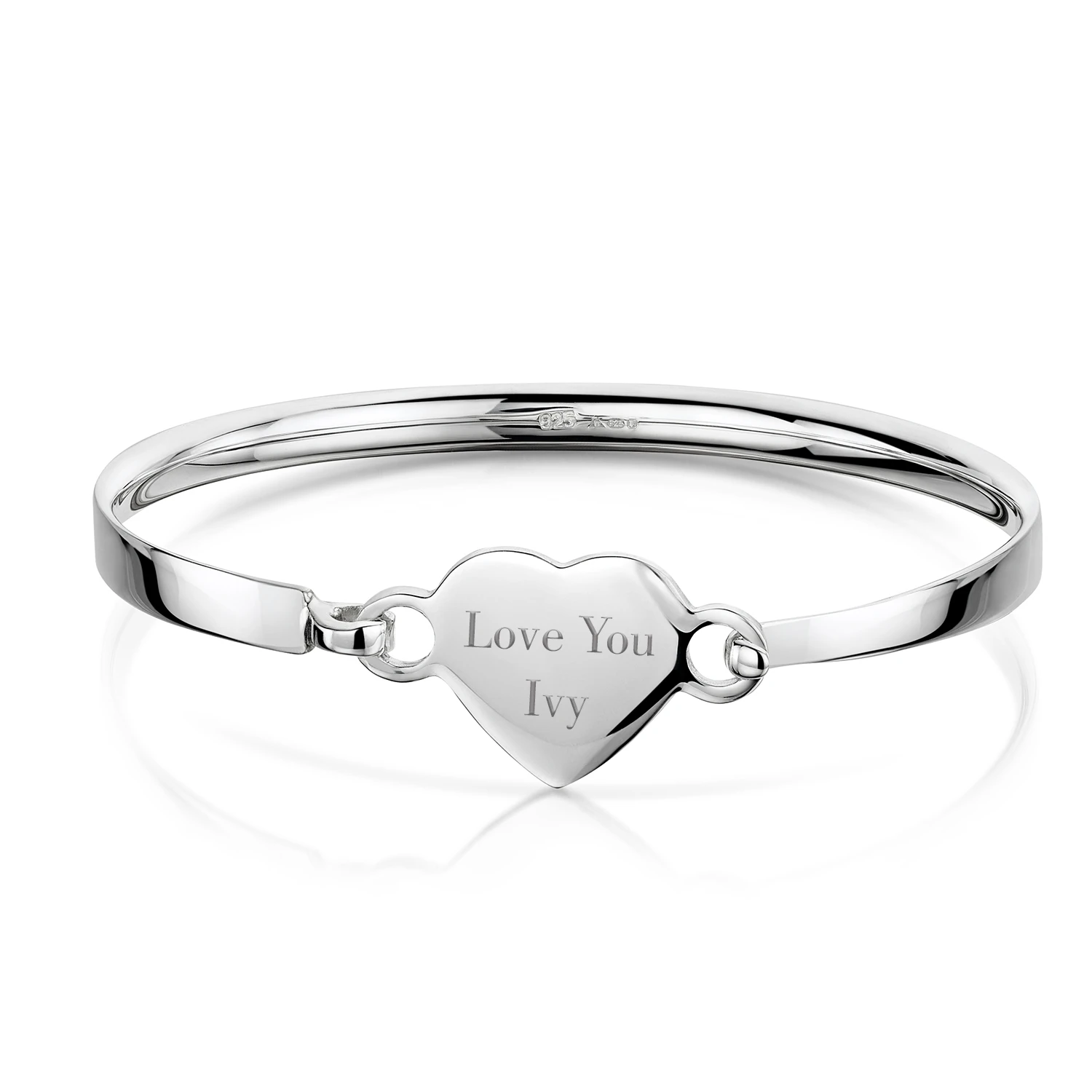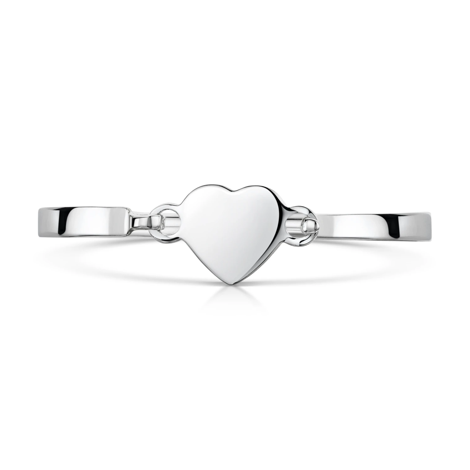 A hallmarked sterling silver heart clasp children’s bangle. Introducing our exquisite children’s bangle, crafted with utmost care and precision from 925 sterling silver. This timeless piece is designed to capture the hearts of both children and parents alike. The clasp on the heart of the bangle makes it easy to put on and take off the bracelet. Personalization is at the heart of this bangle, as it can be engraved with a personal message or the child’s name, adding a touch of sentiment and individuality.