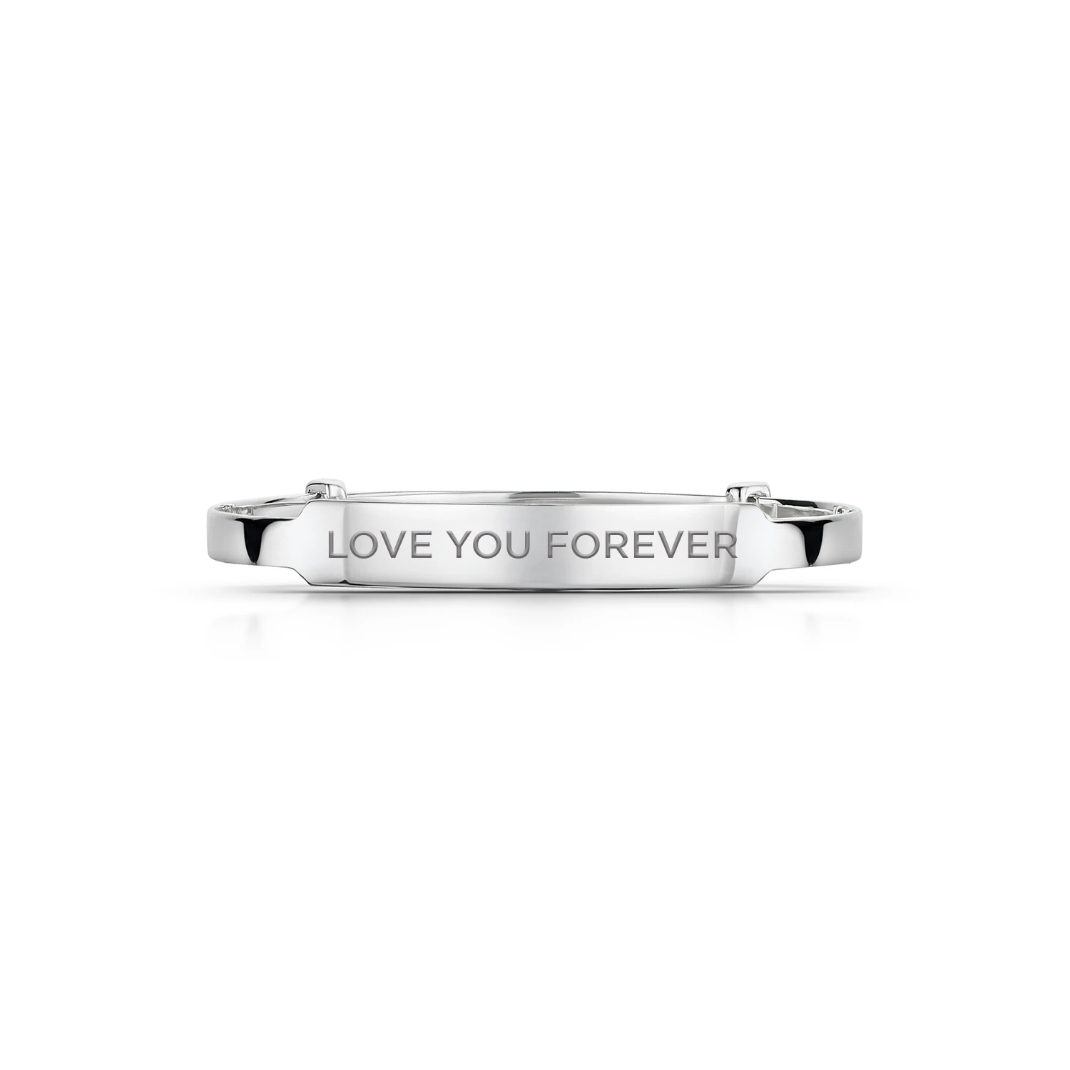 A hallmarked sterling silver extendable children’s bangle featuring an ID style engraving area. Introducing our exquisite children’s bangle, crafted with utmost care and precision from 925 sterling silver. This timeless piece is designed to capture the hearts of both children and parents alike. Personalization is at the heart of this bangle, as it can be engraved with a personal message or the child’s name, adding a touch of sentiment and individuality.