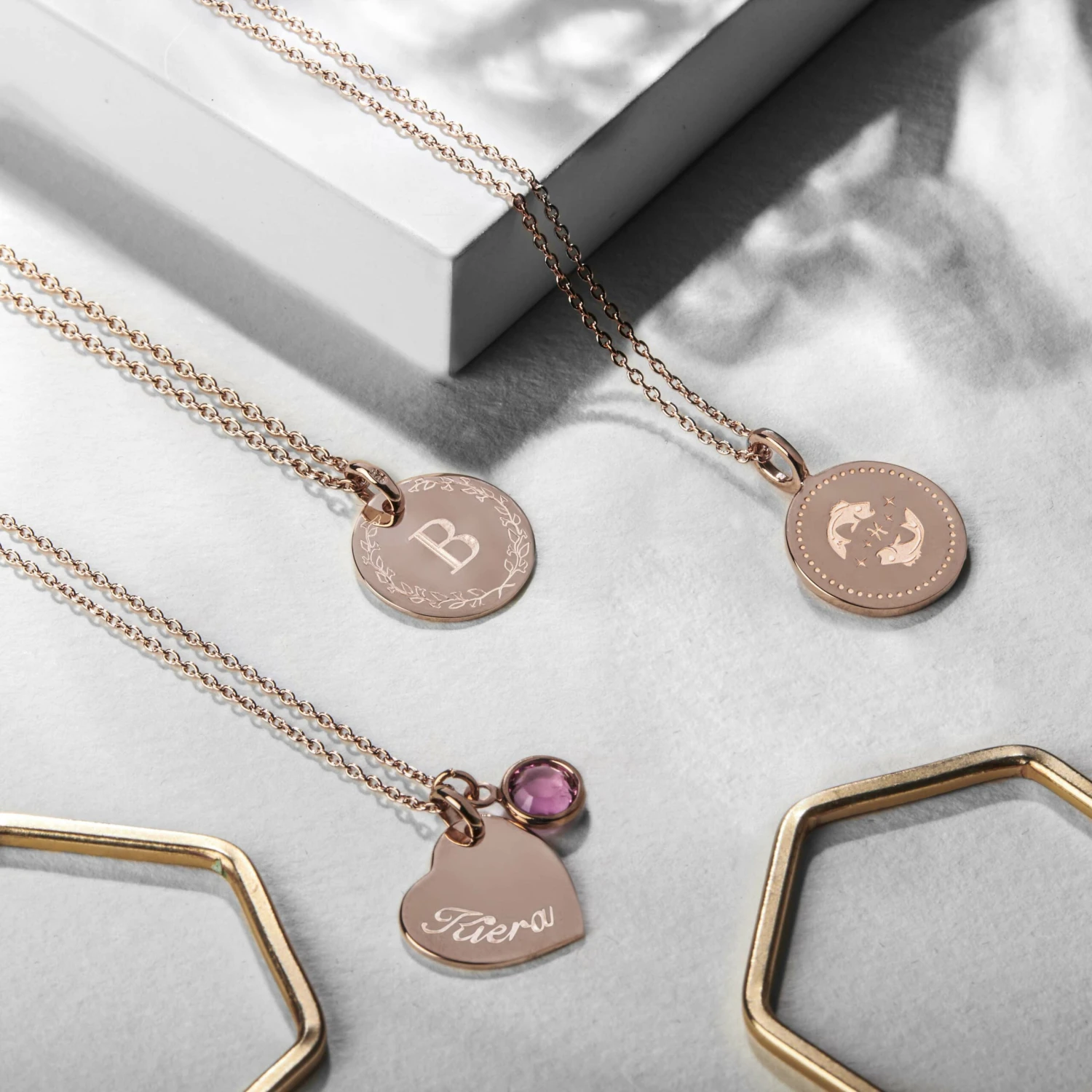 Swarovski® birthstone crystal on heart personalised necklace made in solid 925 sterling silver with rose gold plate. A classic but contemporary piece from MYRI London which complements any style, this rose gold heart should be a staple item in any jewellery collection. Smooth curving lines define this item, offering gentle sensibilities and the crystal birthstone adds an additional personal touch. The broader shape makes the perfect stage for a beautiful personalised engraving, and all engraving is carried out with the finest diamond-tipped cutters.
