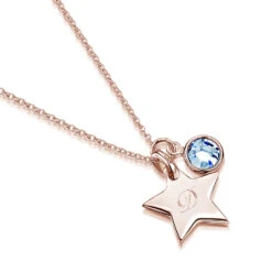 Little star personalised necklace for single initial, with Swarovski® birthstone crystal. A charming piece from MYRI London full of fun that is the perfect way to celebrate the initial of a loved one or friend. Made in solid sterling 925 silver, it is plated with rose gold to the highest quality and is guaranteed to last for very many years to come. The Swarovski® crystal is cut to create a brilliant display of refracted light, bringing a sense of playfulness to the engraved necklace.
