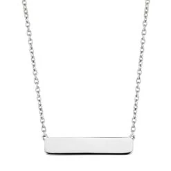 Silver name bar necklace from Ti Sento. This simple piece from the eponymous Italian jewellery house is designed specifically for engraving. Pared back to the essential elements of a solid silver bar hanging from a substantial silver chain, the engraved necklace is perfect to be worn on its own or layered with other pieces. The diamond-cut engraving also brings a special personal touch.