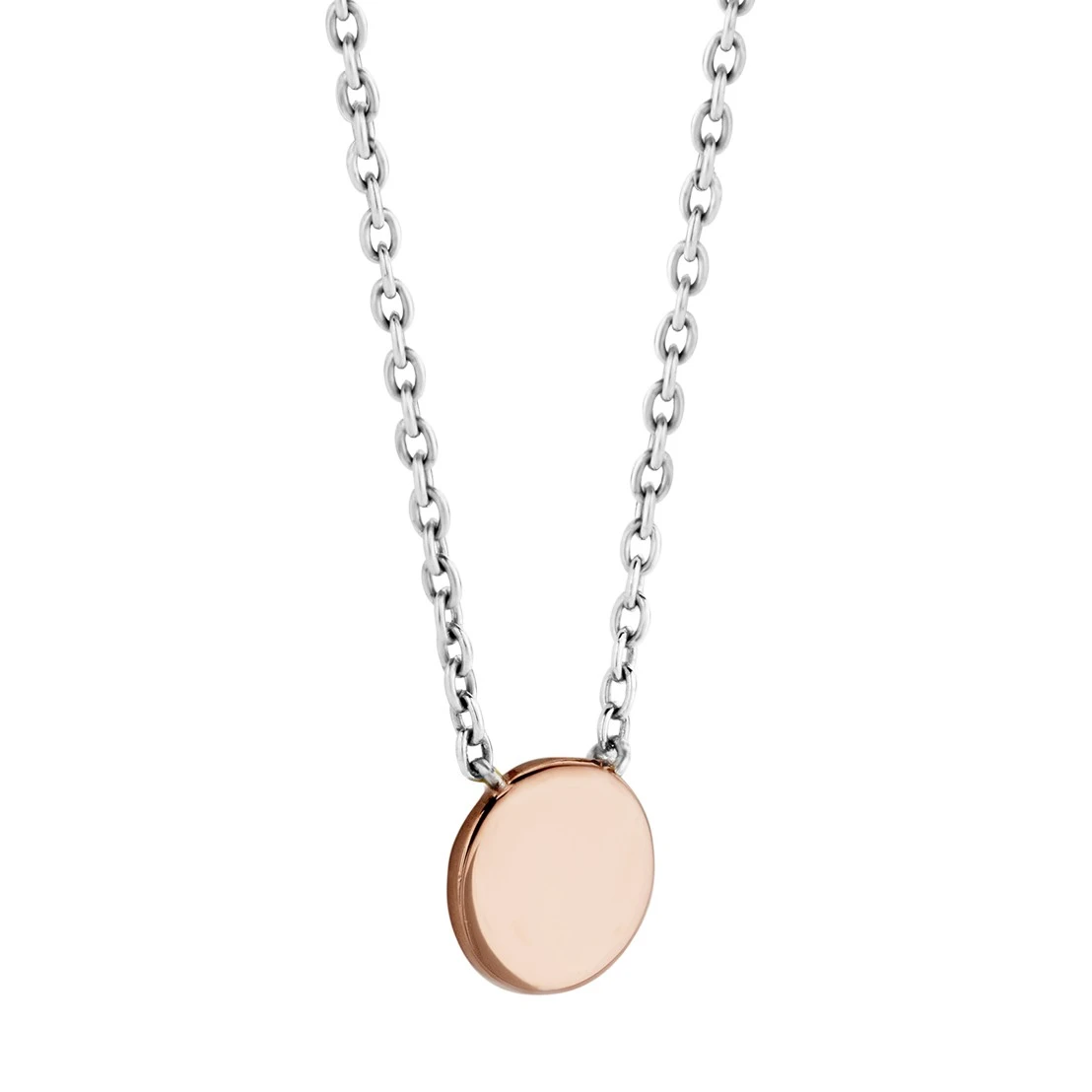 Rose gold disc necklace from TI SENTO. This simple piece from the eponymous Italian jewellery house is designed specifically for engraving. Pared back to the essential elements, the piece consists of a small 18K rose gold plated solid silver disc hanging from a substantial silver chain. The engraved necklace is perfect to be worn on its own or layered with other pieces, while the diamond-cut engraving of a single initial also brings a special personal touch.