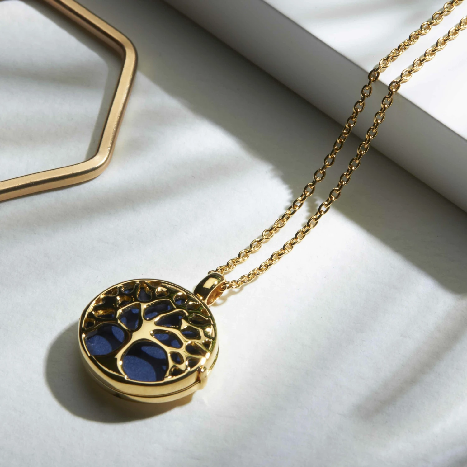 Tree of Life engraved locket in 925 sterling silver with gold finish from LoveLox. Representing the connectedness of all forms of creation, this locket reinterprets the ancient symbol with wonderfully clean lines and contemporary styling. Commonly depicted across cultures and faiths from all over the world, this universal image denotes wisdom, enlightenment, growth and strength, bearing positive associations for the wearer.