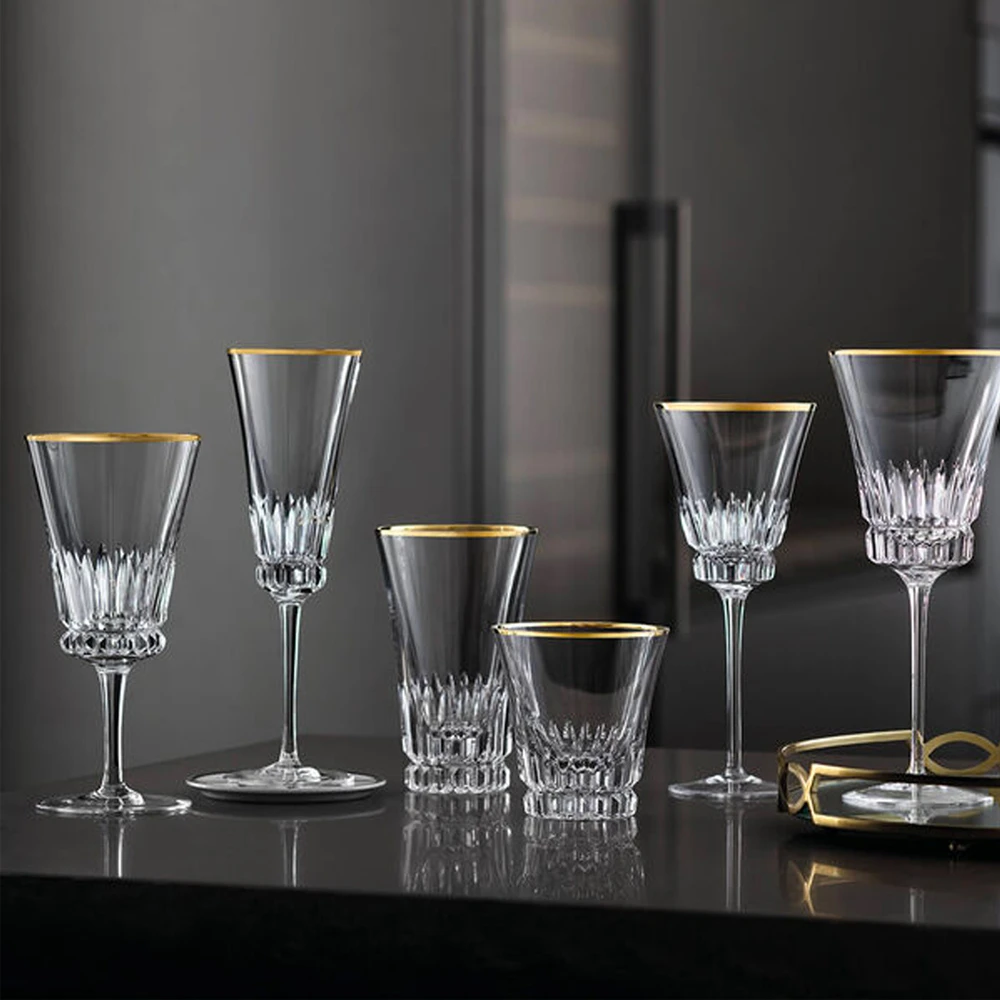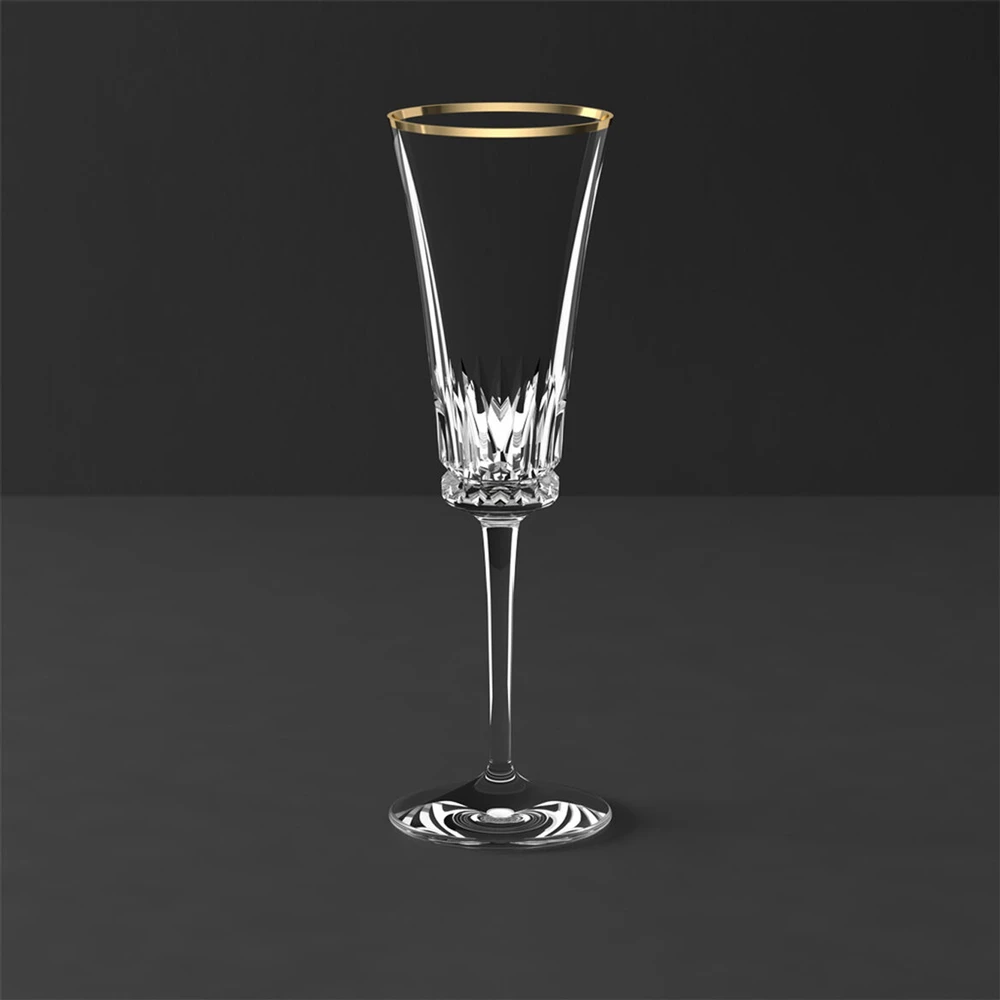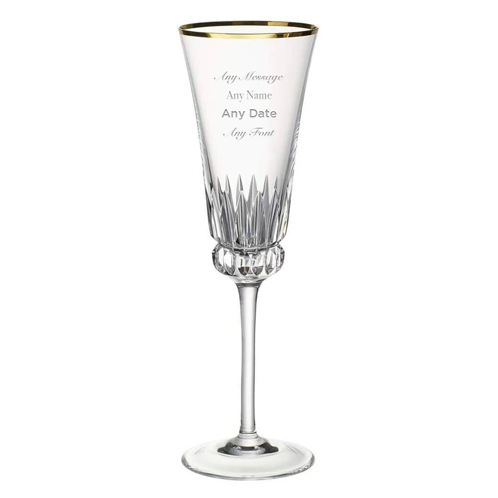 The Grand Royal Gold collection combines crystal glass cut artistically with an extravagant gold rim to create a contemporary yet stylish whole. Serve sparkling wine or champagne in this elegant goblet at a festive occasion and create an exclusive and luxurious atmosphere. Make special moments unforgettable. Precision laser engraving of a custom message brings further individuality.