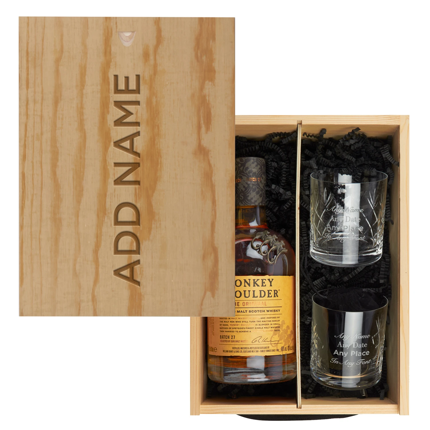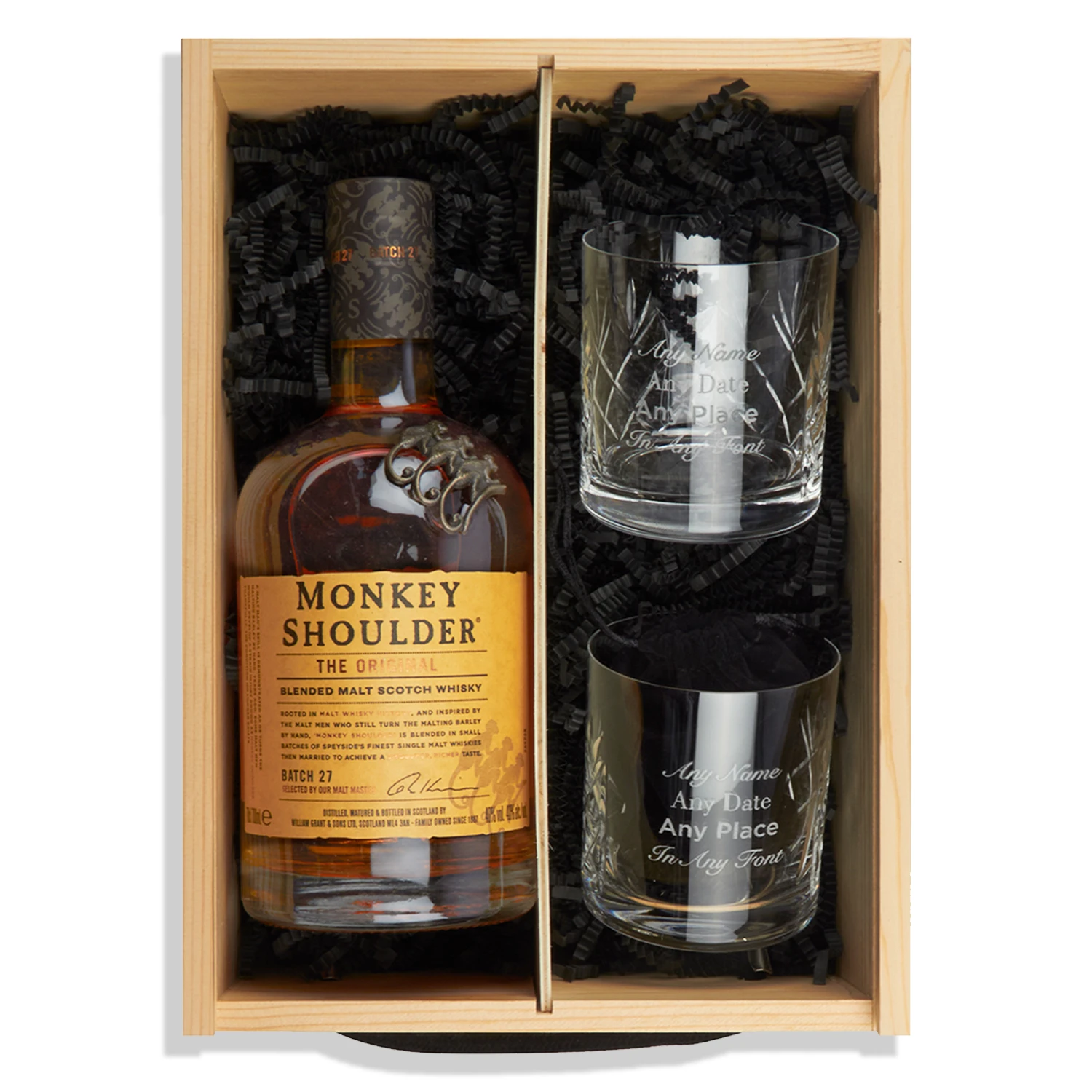 This tasteful collection is designed to delight the whisky connoisseurs in your circle. The heart of this hamper lies in the pair of whisky glasses with personalised engravings – be it names, initials, or a heartfelt note – it’ll make a cherished memento for any whisky drinker. Here’s what you will find inside the beautifully crafted wooden box: