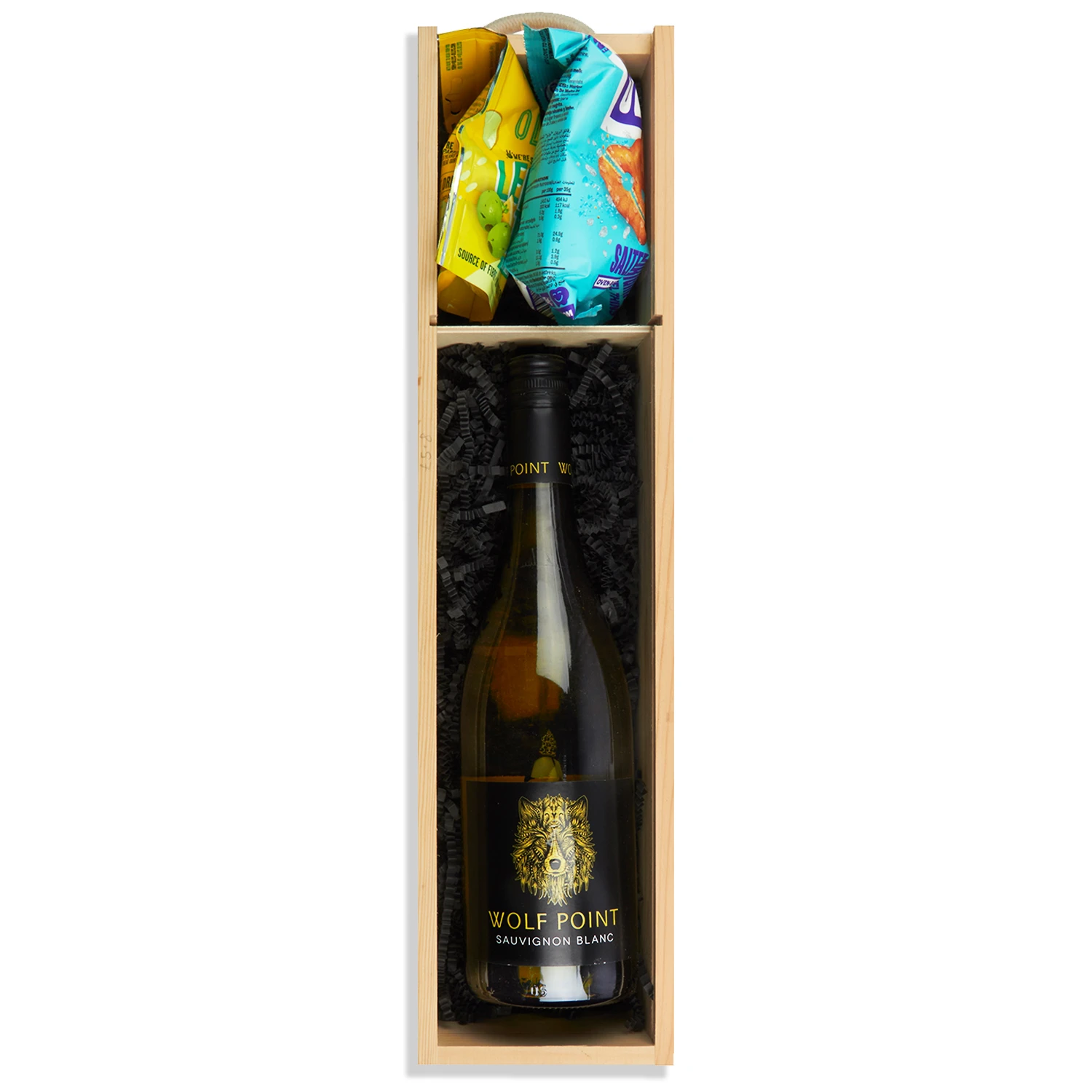We’ve paired a delicious white wine with some tasty snacks to make a perfect gift for the wine lover in your family or friendship group. Presented in an elegant wooden box, the lid can be personalised with a name, or message adding an extra touch of thoughtfulness.