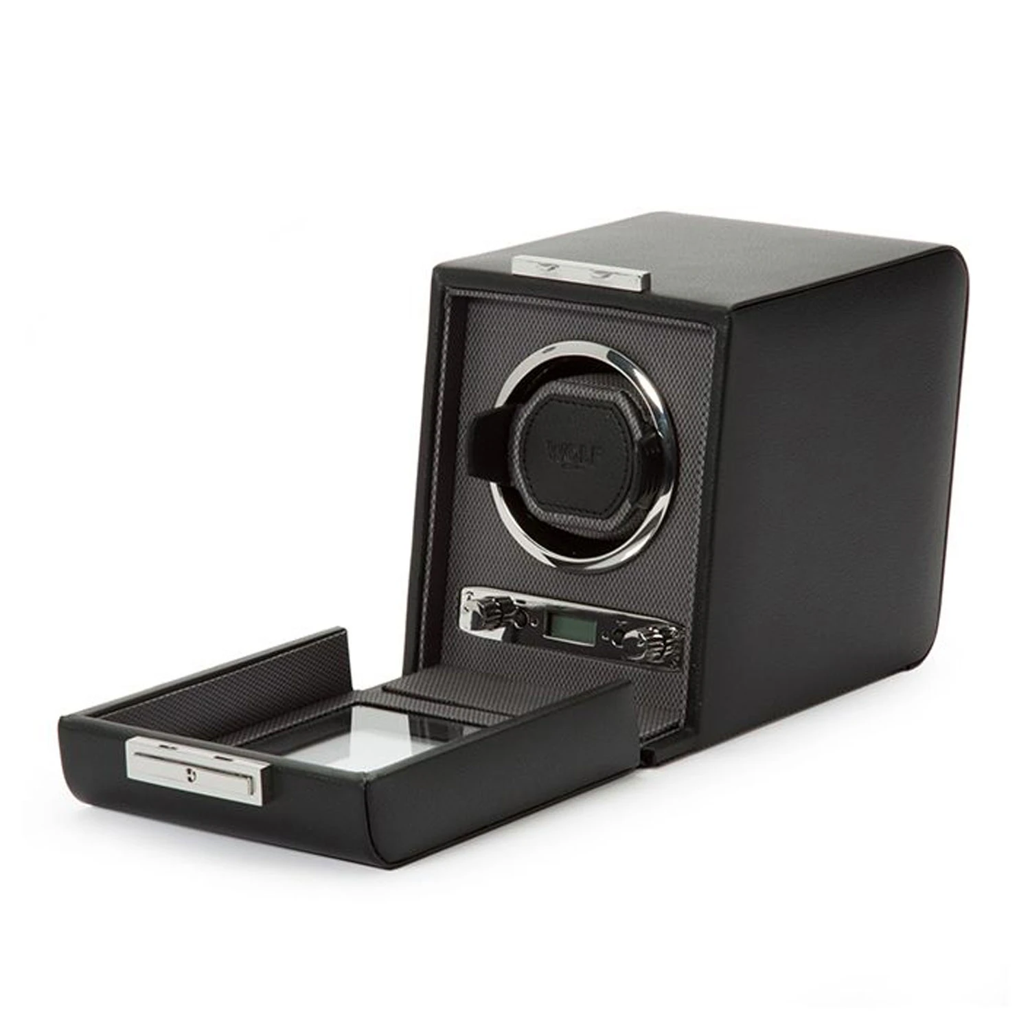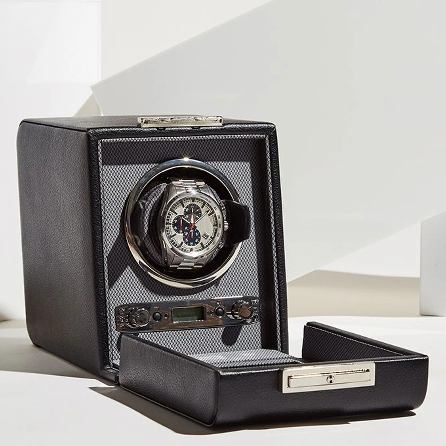 A vegan leather patented watch winder from Wolf 1834. Rule over your collection with authority with a timeless Viceroy watch winder. A modern classic that exudes an understated elegance. Choose from single up to 8 modules and be assured your timepiece will be wound with complete accuracy. Clockwise, anti-clockwise or both, we will take care of your watch for all time. With lock and key security, this watch winder also gives you the option of either battery or mains power.